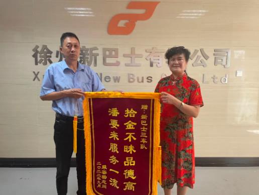 9月5日上午,市民楊女士專程來到徐州公交新巴士公司送上一面印有“拾金不昧品德高,潘要來服務(wù)一流”的錦旗,感謝徐州新巴士公司8路線駕駛員潘要來。