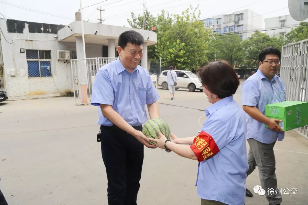 為切實關(guān)心關(guān)愛堅守一線的公交員工,徐州公交認(rèn)真開展“夏日送清涼”活動,7月22日上午11:45,領(lǐng)導(dǎo)班子分4組深入站臺、調(diào)度室、修理車間等17處基層一線,為奮戰(zhàn)一線、堅守崗位的員工送上涼茶、西瓜等清涼物資,向冒著高溫酷暑、辛勤工作的一線員工表示敬意和慰問,叮囑他們落實好各項防暑降溫措施,確保在高溫環(huán)境下市民能正常清涼出行。
