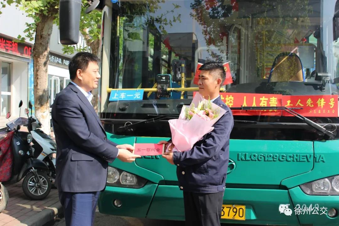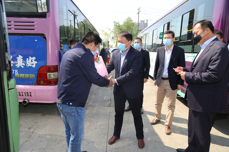 當(dāng)天上午,公交集團(tuán)黨委書記、董事長杜紅軍,總經(jīng)理馮陸陸,常務(wù)副總經(jīng)理蔣成彪,副總經(jīng)理丁玉華帶隊分為四組,到14路、64路、10路等終點站、車場等處開展勞模標(biāo)兵走訪慰問活動,為韓杰、劉艷軍、楊鵬鵬、曹瑞國、劉委等11名市勞模,省、市五一勞動獎?wù)潞推髽I(yè)勞模送去了鮮花和節(jié)日慰問金。