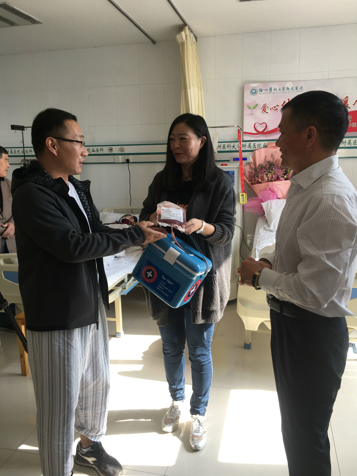 自7月底接到通知的這段時(shí)間,鄭剛一直積極配合著,希望保持最佳的身體狀態(tài)進(jìn)行捐獻(xiàn)。他努力克制自己,戒煙戒酒,鍛煉身體,增加高營(yíng)養(yǎng)的飲食調(diào)理。喝不慣牛奶的他甚至強(qiáng)迫著自己一天喝兩包奶。國(guó)慶節(jié)幾天,他突然感冒發(fā)低熱,竟忍著沒(méi)敢吃藥……鄭剛所在的單位也給予了大力的支持和配合,10月25日入院,徐州公交為他舉辦了隆重的歡送儀式,董事長(zhǎng)、總經(jīng)理杜紅軍等領(lǐng)導(dǎo)給他送來(lái)了慰問(wèn)金,安排好他的休息時(shí)間。