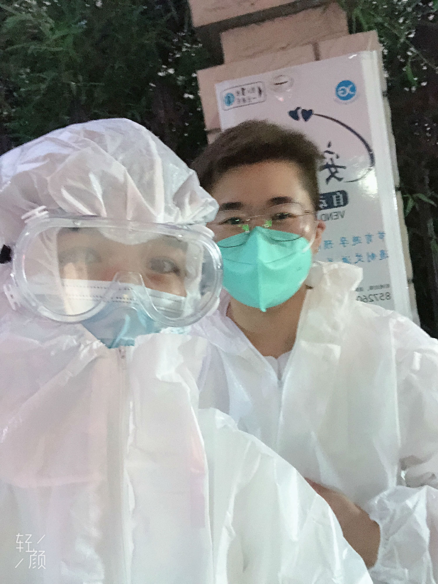 請大家不要著急,排好隊、戴好口罩,保持一米距離。身穿防護(hù)服的她們高聲引導(dǎo)。短短兩天時間她們親身體驗到了醫(yī)護(hù)人員的辛苦。這是我們倆第一次穿上防護(hù)服,和之前電視里看到一樣,脫下防護(hù)服后皮膚上有深深的勒痕,但是穿上的那一刻就感到責(zé)任重大!兩個年輕人苦中作樂用照片記錄下自己這段特殊的經(jīng)歷。