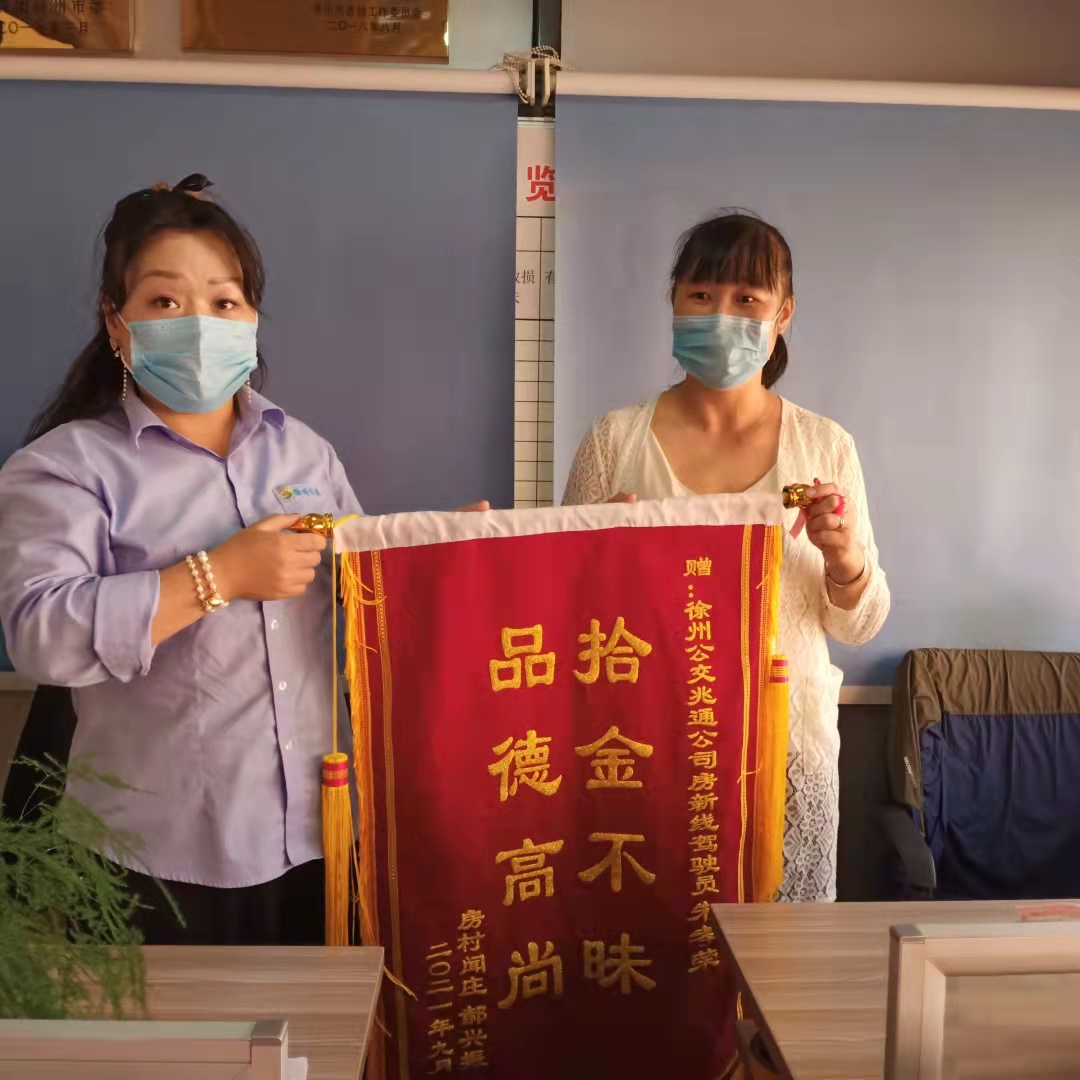 郝女士乘坐房村新區(qū)的車輛回家過節(jié),不小心將錢包丟在了車內(nèi)。駕駛員朱孝榮收班后,清理車輛衛(wèi)生時,在座位上發(fā)現(xiàn)了錢包,內(nèi)有現(xiàn)金、身份證、醫(yī)保卡等證件。他通過錢包里的信息聯(lián)系上失主,交還了錢包。郝女士非常感激,專門送來錦旗,感謝駕駛員的拾金不昧。