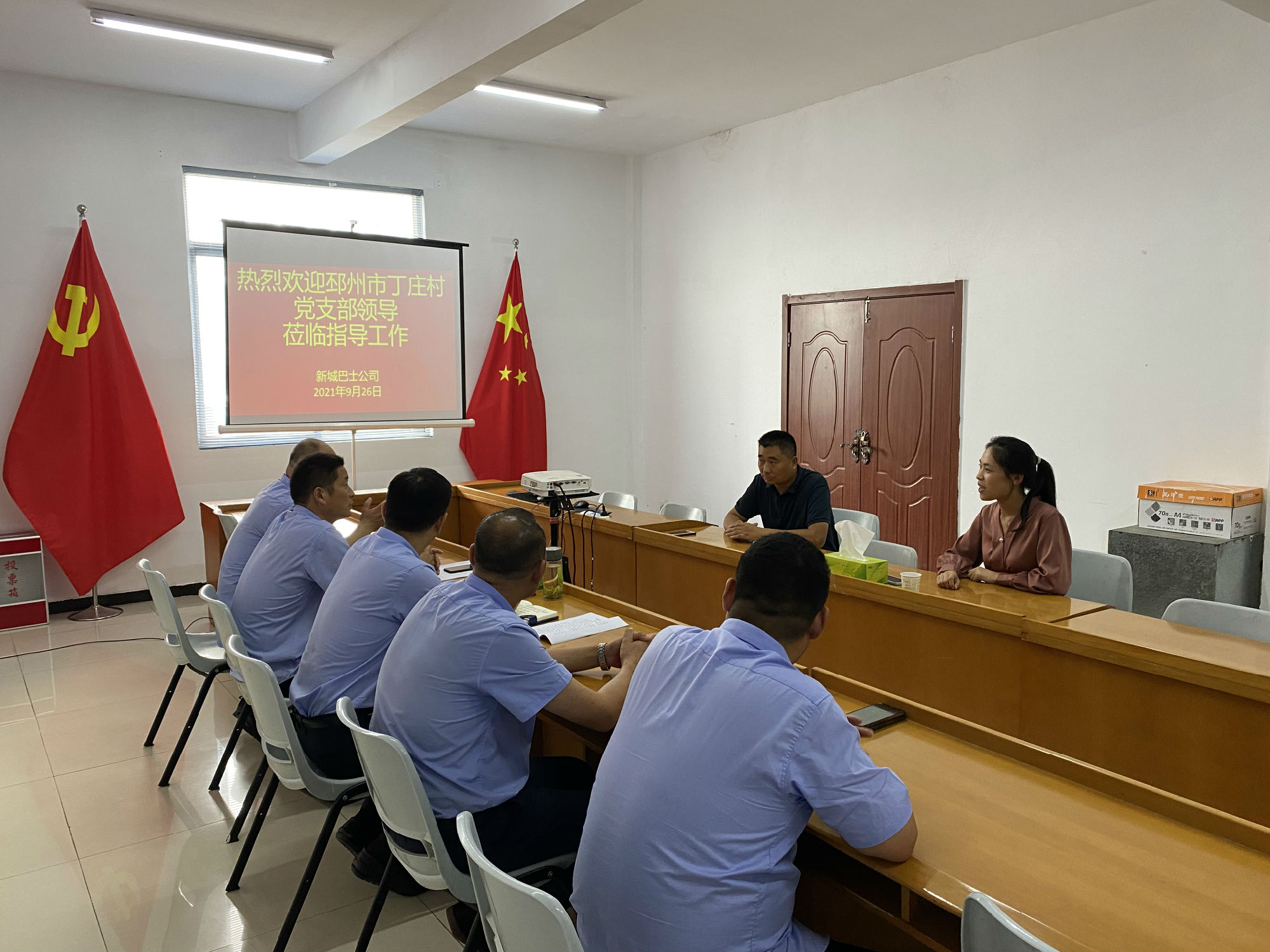 為深入學(xué)習(xí)貫徹習(xí)近平總書(shū)記在慶祝中國(guó)共產(chǎn)黨成立100周年大會(huì)上的重要講話精神,充分發(fā)揮黨建引領(lǐng)作用,促進(jìn)企村共同發(fā)展,9月23日,邳州市陳樓鎮(zhèn)黨建負(fù)責(zé)人和丁莊村村支書(shū)一行來(lái)到公交新城公司、城北公司參觀學(xué)習(xí)黨建工作。