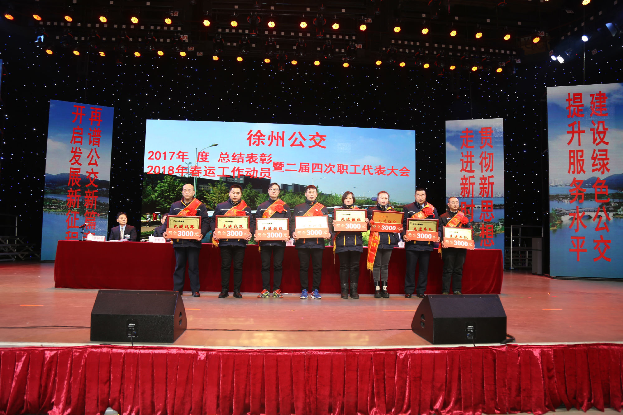 大會(huì)在莊嚴(yán)的國(guó)歌聲中拉開序幕。公司董事長(zhǎng)、總經(jīng)理杜紅軍首先作經(jīng)理工作報(bào)告,對(duì)2017年“改革創(chuàng)新年”工作進(jìn)行了全面總結(jié):一、實(shí)施“同城同價(jià)”,優(yōu)化運(yùn)營(yíng)管理,實(shí)現(xiàn)服務(wù)水平新突破。連續(xù)第五年面向全市征集線路線網(wǎng)優(yōu)化意見近3000條,據(jù)此新辟優(yōu)化線路29條。二、深化資源共享,在互聯(lián)網(wǎng)+企業(yè)管理上譜寫新藍(lán)圖。繼續(xù)深化集中維修,推行集中例檢。論證實(shí)施支付寶、微信、銀行卡閃付等智能化移動(dòng)支付方式。三、深化文明創(chuàng)建,打造優(yōu)秀公交,服務(wù)民生出行贏得新口碑。在國(guó)檢、省檢中未失一分,圓滿完成創(chuàng)建驗(yàn)收任務(wù)。投訴總數(shù)和有責(zé)投訴同比實(shí)現(xiàn)“雙下降”。乘客表?yè)P(yáng)同比上升近20%。公司在2016年行風(fēng)熱線上線單位滿意度評(píng)議投票中名列榜首。率先打造公交行業(yè)禮讓斑馬線嶄新形象,圓滿完成公交反恐防暴工作。四、著力綜合管理,聚合內(nèi)生動(dòng)能,增強(qiáng)企業(yè)發(fā)展新優(yōu)勢(shì)。重新修訂2012版管理制度匯編和新版《徐州公交獎(jiǎng)懲條例》。五、踐行十九大精神,推進(jìn)和諧發(fā)展,開創(chuàng)黨群工作新面貌。接著,杜總分析了工作中存在的問(wèn)題,提出下步工作重點(diǎn)。一、建設(shè)現(xiàn)代化公交,提升經(jīng)營(yíng)管理水平,保障企業(yè)良性有序運(yùn)行;二、踐行集約共享理念,深化科技應(yīng)用,開創(chuàng)公交事業(yè)發(fā)展新局面;三、建設(shè)平安公交,提升服務(wù)口碑,展示文明公交新形象;四、踐行十九大精神,構(gòu)建和諧公交,開啟黨群工作新面貌。