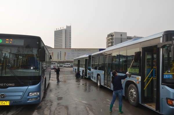 特別是雨后,所有管理人員、調(diào)度員、駕乘人員齊上陣,利用休停和晚收車后的時(shí)間,加班加點(diǎn)對(duì)2300多臺(tái)營(yíng)運(yùn)車輛和各公交首末站、停車場(chǎng)、調(diào)度室等環(huán)境衛(wèi)生進(jìn)行了徹底的衛(wèi)生大掃除,清理衛(wèi)生死角。由機(jī)關(guān)職能部室和服務(wù)督導(dǎo)隊(duì),以及各營(yíng)運(yùn)公司組成檢查組,每天都要在線路開展衛(wèi)生專項(xiàng)檢查。針對(duì)檢查中發(fā)現(xiàn)的問題限期整改,責(zé)任到人。徐州公交在每臺(tái)車的前擋風(fēng)玻璃處放置了創(chuàng)衛(wèi)標(biāo)語(yǔ),在公交首末站懸掛創(chuàng)衛(wèi)標(biāo)語(yǔ)37個(gè),在700多臺(tái)公交車載電視中滾動(dòng)播出創(chuàng)衛(wèi)宣傳片,制作了創(chuàng)衛(wèi)健康宣傳專版30多個(gè),在每個(gè)調(diào)度室張貼了《中國(guó)公民健康素養(yǎng)66條》,在所有停車場(chǎng)、辦公區(qū)域、車廂內(nèi)張貼了禁煙標(biāo)識(shí)。